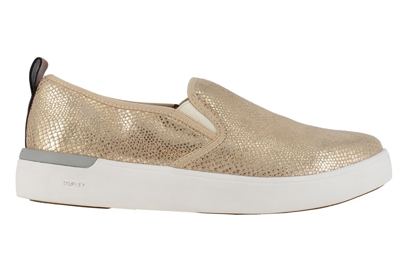 Компания вывела на американский рынок «золотые» женские слипоны Parissa Work. Легкие кожаные «тапочки» с тисненным рисунком под питона выглядят как повседневная спортивная обувь для модниц, однако за гламурной внешностью скрывается вполне достойная защита, соответствующая стандартам ANSI/ASTM I75 & C75: композитный подносок и нескользящая резиновая подошва, дополненные съемной стелькой из пеноматериала и замшевой подкладкой.