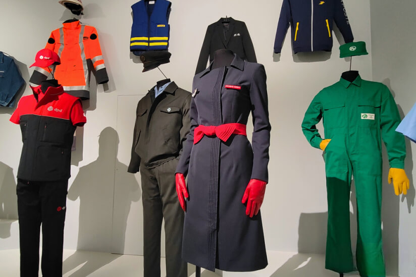 На выставке также представлена униформа почтовых пилотов и бортпроводников, спецодежда строителей и классические синие рабочие комбинезоны (bleu de travail). Часть экспозиции посвящена неожиданным коллаборациям почтовой индустрии и домов высокой моды, таких как Balenciaga, Armor Lux, Carven, Balmain и Fanchon Le Fouler. Эти наряды демонстрируют «захватывающее пересечение высокой моды и повседневной жизни», отмечает издание.
