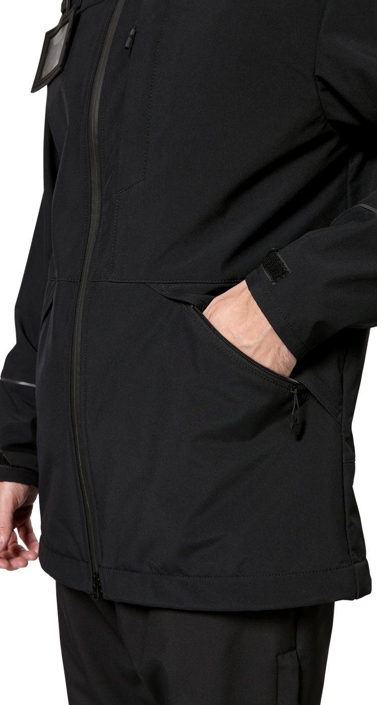 Функциональность куртки проработана под разные задачи. Три вместительных кармана на молниях, нагрудный и два нижних, имеют защитные планки. Это значит, что документы, пропуск или телефон останутся сухими даже в условиях повышенной влажности. Для сотрудников, которым необходимо постоянно носить с собой рацию или бейдж, предусмотрены специальные шлевки и даже съемное окошко из ПВХ на кокетках.