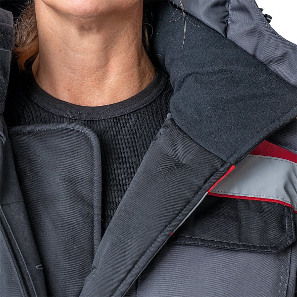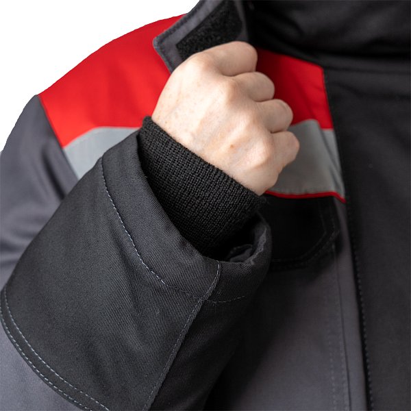 Удлиненная прямая куртка из смесовой ткани (51% хлопок + 49% полиэфир) с водоотталкивающей отделкой и комбинированной подкладкой (100% полиэфир + ветрозащитная ткань), утепленная тремя слоями синтепона, рассчитана на температуру до -41 °C (3(4) класс). Куртка застегивается на потайную застежку с внутренним клапаном, защищающим от ветра; утепленный воротник-стойка фиксируется на липучку. Отстегивающийся капюшон регулируется в двух направлениях – по высоте и вокруг лица.