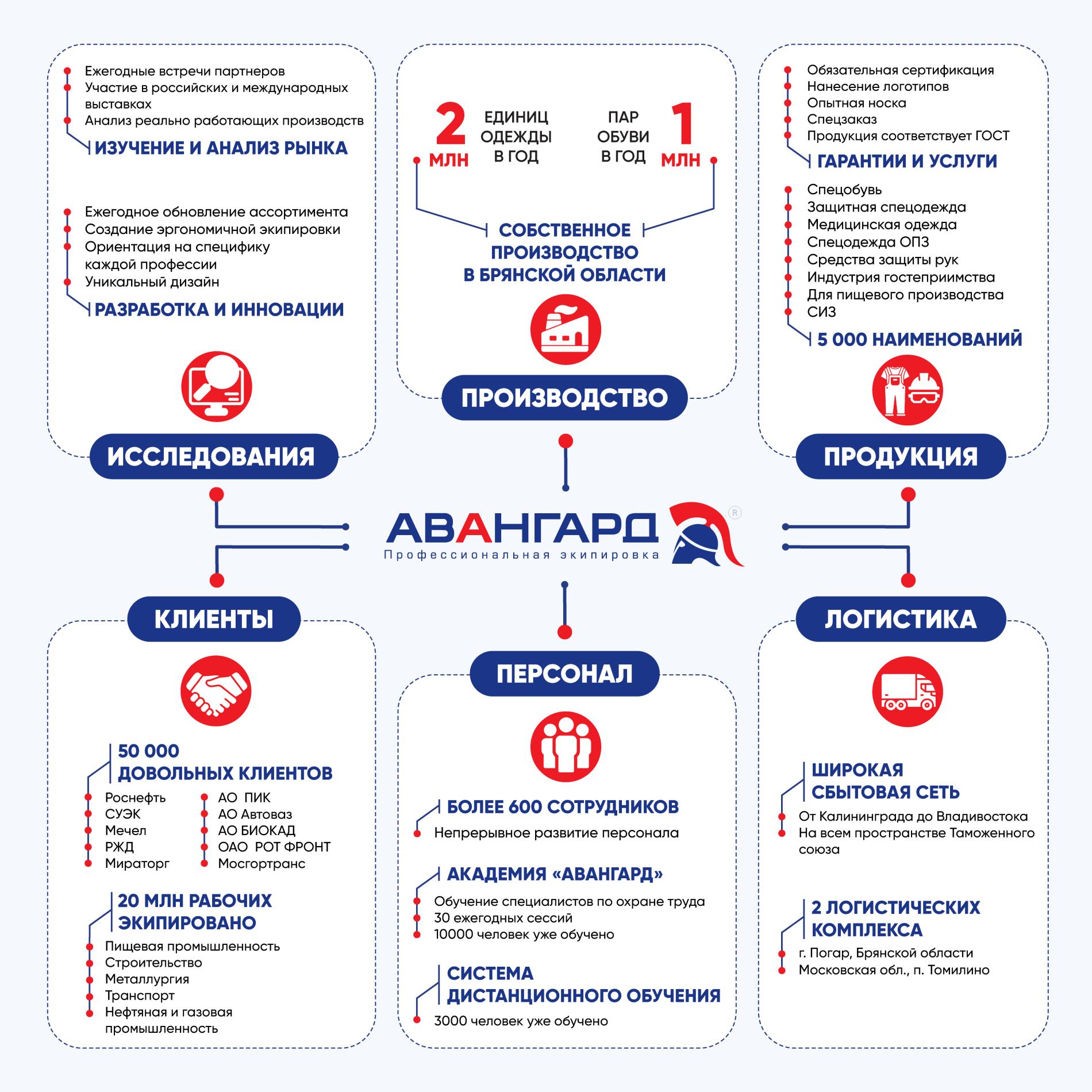 Группа компаний «Авангард. Профессиональная экипировка» растет, инвестирует в развитие собственной производственной базы: в России выпускается свыше 2 млн единиц одежды и 1 млн спецобуви в год.