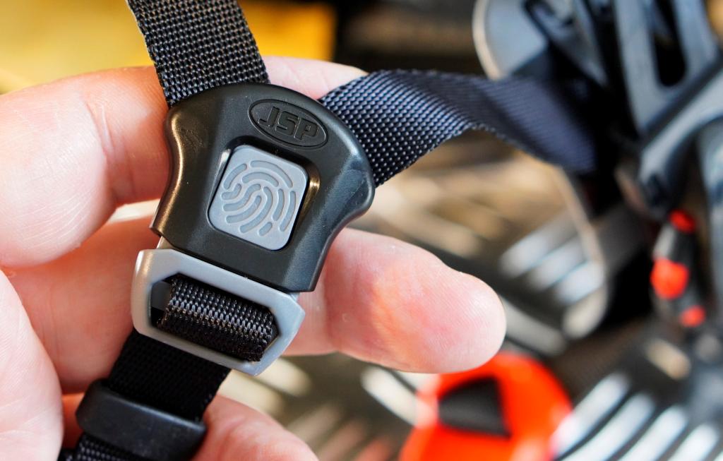 4-точечный подбородочный ремень позволяет легко переключаться между двумя стандартами одним движением кнопки. Проще говоря, для высотных работ ремешок отстёгивается при нагрузке 50 кг, для наземных – при 25 кг.