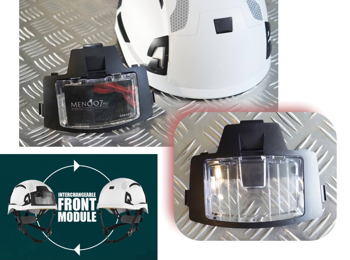 Особенность каски EVO ALTA – в конструкцию введен уникальный сменный передний модуль.