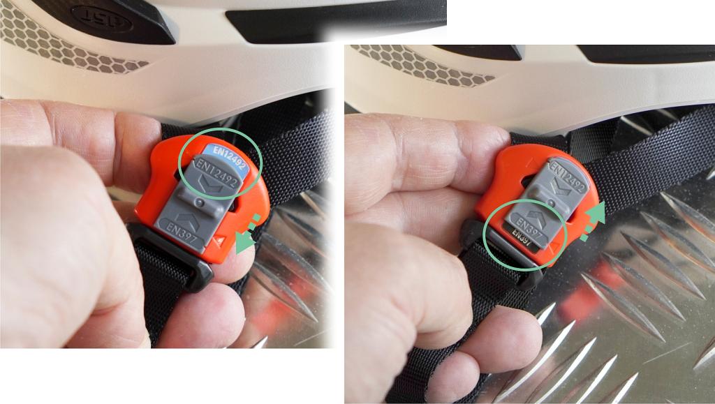 Уникальное решение – переключаемая система безопасности DualSwitch, установленная на подбородочном ремне, позволяющая работать по требованиям, как EN 12492, так и EN 397, с передвижным переключателем на подбородочном ремне.
