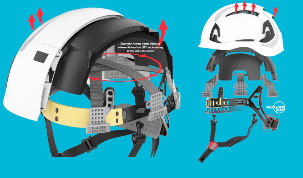 Переработанное и улучшенное оголовье Revolution Flex Wheel с храповым механизмом надежно фиксирует каску, устраняя точки давления и обеспечивая максимальный комфорт.