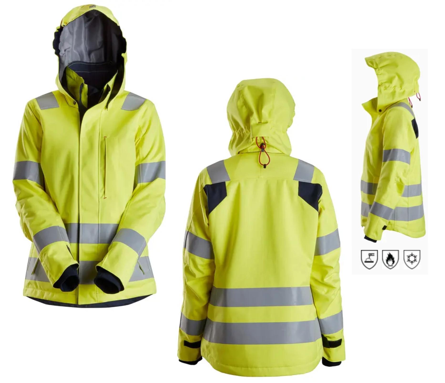 Последовательно, после дебюта мужской модели, бренд Snickers (Швеция) предлагает новинку – женскую водонепроницаемую утеплённую куртку ProtecWork с капюшоном класса High-Vis, которую можно классифицировать как multinorm (многофакторная защита).