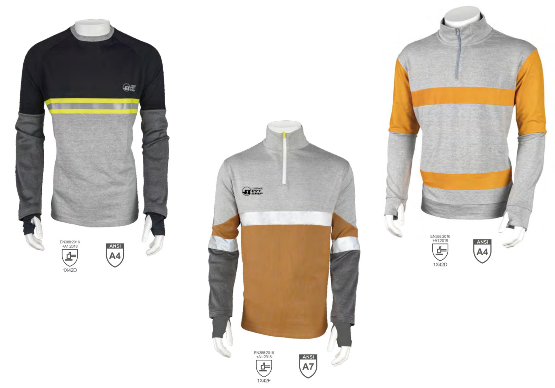 Это – трикотажные изделия, выполненные из специализированной противопорезной пряжи с повышенной устойчивостью к порезам с рыночным названием MetalQ (несмотря на название, не содержит металла, по существу, это усовершенствованная композиция волокон на основе графена и сверхвысокомолекулярного полиэтилена высокой плотности UHMWPE). В отличие от обычных нитей, в основе которых лежат жёсткие или абразивные материалы, такие как стекло, базальт или сталь, трикотаж MetalQ® соответствует стандарту EN388 (уровень стойкости к порезу D), оставаясь при этом удивительно мягким, гибким и лёгким.