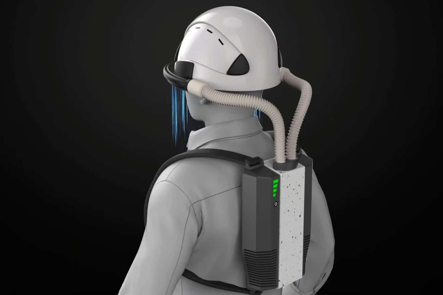 Воздушная завеса, опускающаяся с полей каски, может предотвратить попадание 99,8% вредных аэрозолей, вирусов, грибов и патогенных бактерий на лицо работника.
