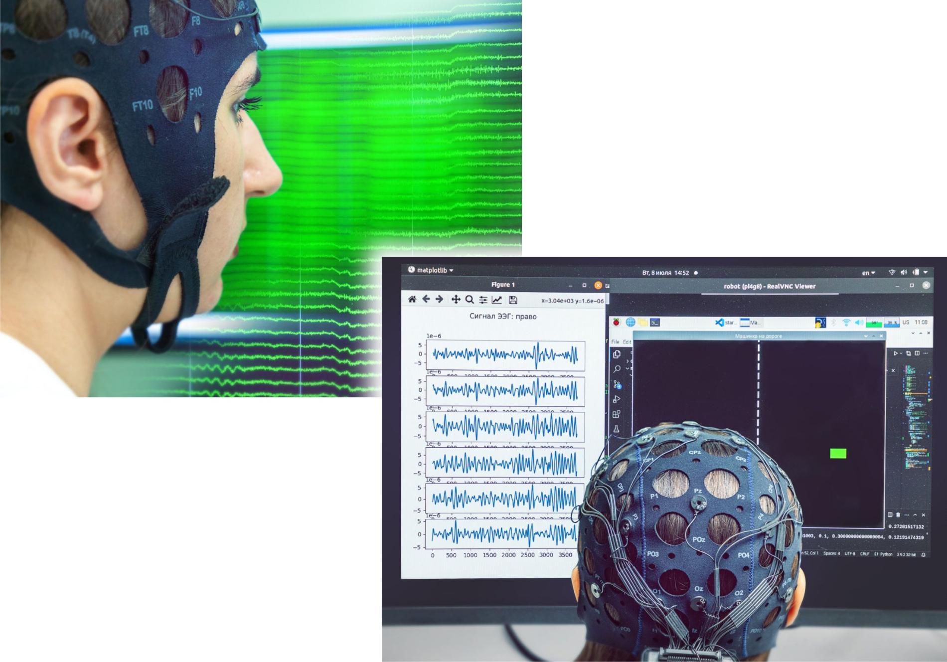 Сигналы мозга считываются классическим ЭЭГ-шлемом (снимающим электроэнцефалограмму) и поступают по вайфаю на плату с мемристорным чипом, на котором команда обрабатывается и передаётся роботу. Оператор в процессе может скорректировать свою команду, например изменить направление движения робота.