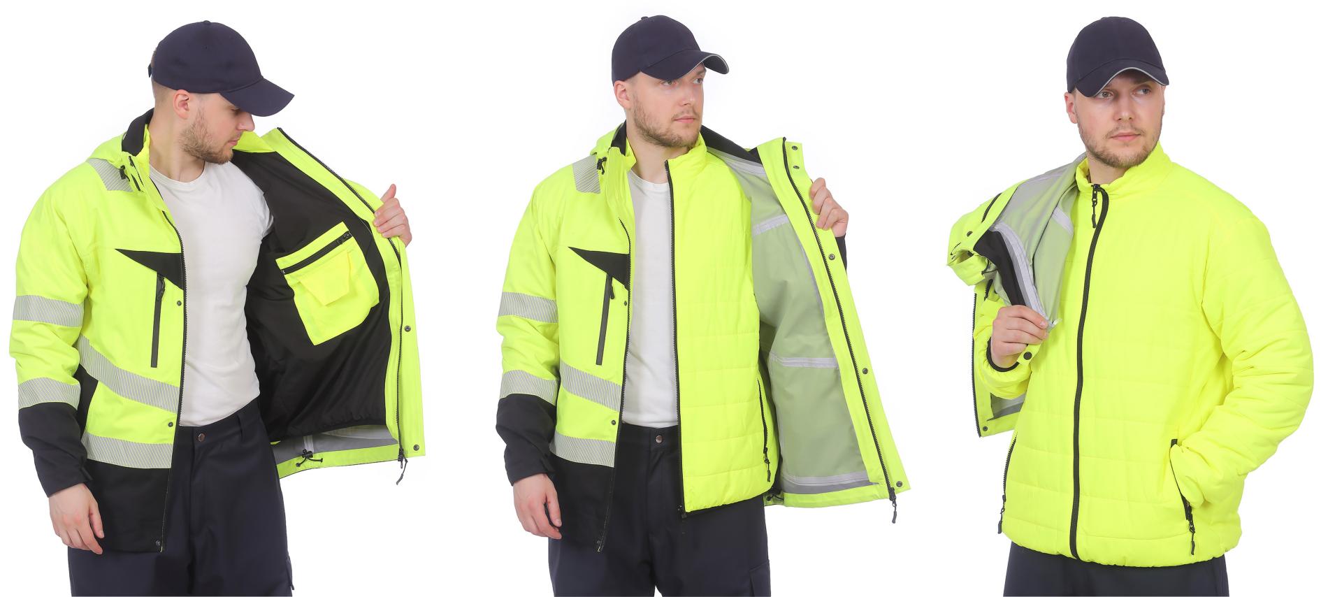 Куртка с утепляющей подкладкой составляет одно изделие, совмещающее в себе такие характеристики, как повышенная видимость и защита от пониженных температур. Полезная и практичная вещь с расширенным функционалом!