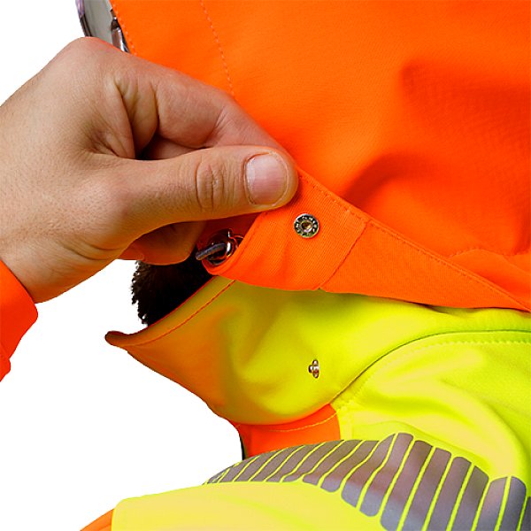 Защита от дождя и ветра, достаточно теплая подкладка из флиса наряду с сигнальной расцветкой – уникальное сочетание, позволяющее работать в непогоду и быть заметным.