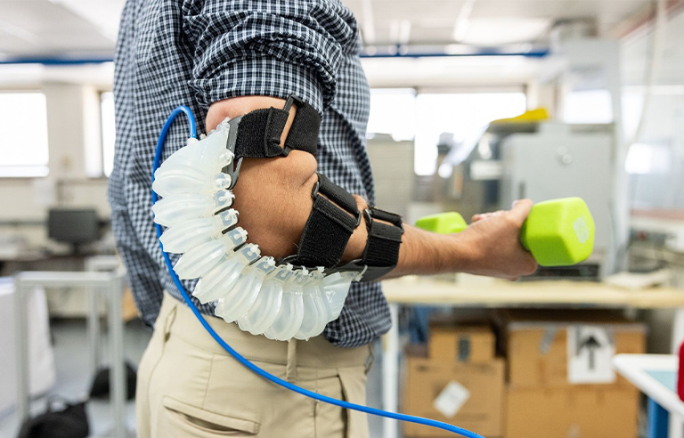 Инженеры Техасского университета разработали мягкий, работающий на сжатом воздухе экзоскелет для снижения мышечного напряжения у рабочих, пишет Safety + Health Magazine.