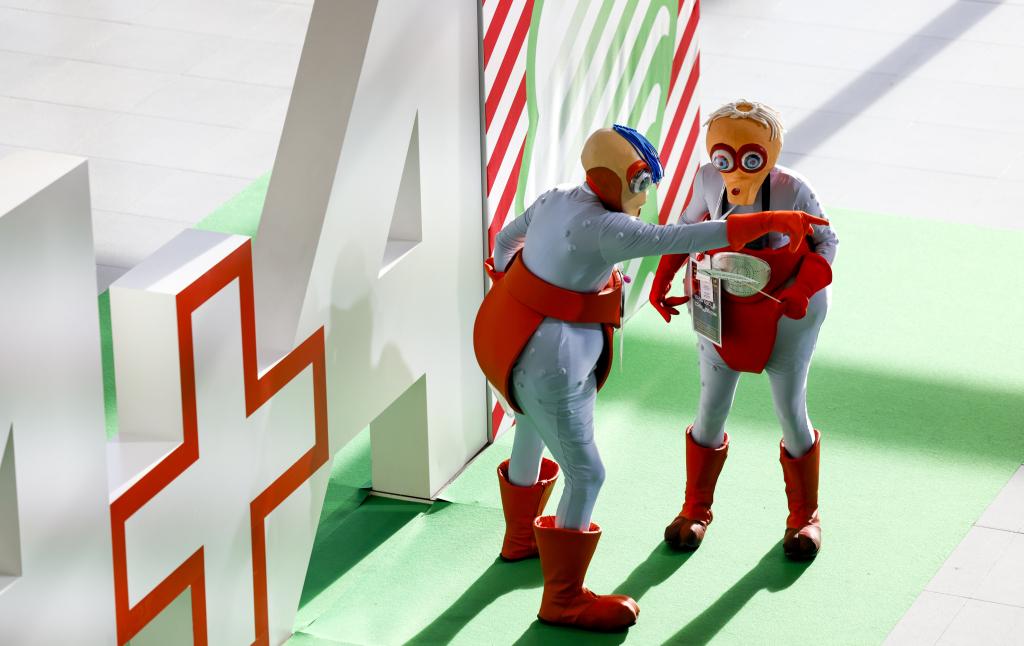 Менеджмент компании «проповедует» довольно радикальный маркетинг – стенд компании оформлен как модный подиум, а ещё он похож на космический корабль из «Космической Одиссеи», а демонстраторы обуви одеты как астронавты. Но, в целом, вид имеет цепляющий, след оставляет яркий!