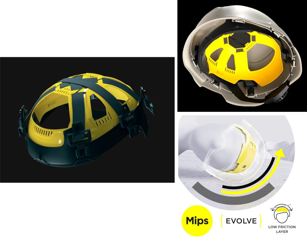 Представленная на А+А усовершенствованная версия системы безопасности Mips® Evolve Pro разработана для перенаправления вращательных движений, воздействующих на голову при определённых ударах, и рекомендована к встраиванию в защитные каски для разных рабочих отраслей.