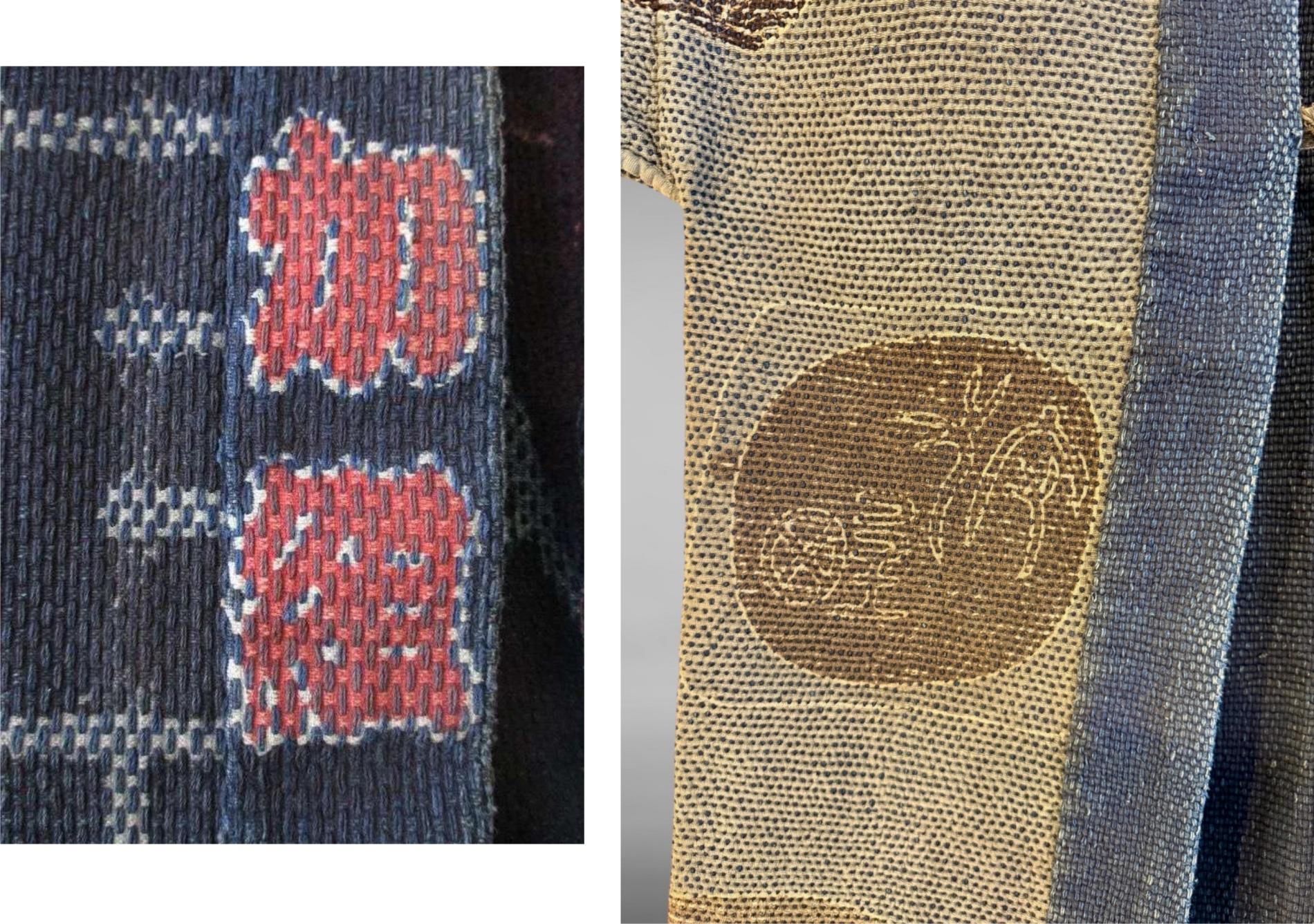 Для объединения слоёв ткани применяли метод стёжки сашико (sashiko, «маленькие уколы»), а для окрашивания – цуцугаки (筒描 – с использованием рисовой пасты).