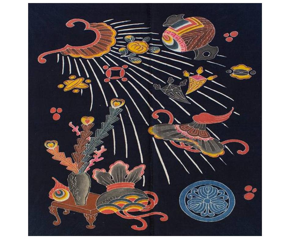Японские пожарные и представление о прекрасномПредставленный в музее образец датирован серединой XIX века. Материал – стёганый хлопок, используется ручная техника окрашивания цуцугаки (tsutsugaki).
